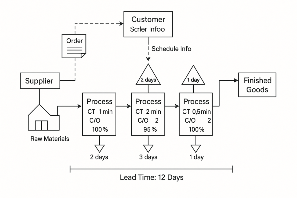 Value Stream Mapping bukan lahir dari ruang rapat atau laboratorium teknologi tinggi, melainkan dari lantai pabrik Toyota pada era pascaperang Jepang. Di sinilah para insinyur seperti Taiichi Ohno dan Shigeo Shingo mengembangkan Material & Information Flow Diagrams untuk memahami aliran nilai secara menyeluruh bukan hanya proses produksi, tapi juga arus informasi yang mendukungnya.